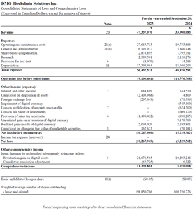 Net loss of $10,267,969 for the year ended September 30, 2025 increased by $5,038,407 from a net loss of $5,229,562 for the year ended September 30, 2024. The change is primarily a result of the IFRS revaluation method applied to digital currencies, where unrealized gains that reverse prior period losses are applied to net income and unrealized gains in excess of the carrying value are applied to other comprehensive income. For the year ended September 30, 2025, the entire $21,671,555 unrealized revaluation gain for the year was recognized in other comprehensive income and did not contribute to a reduction in the Company’s net loss. For the year ended September 30, 2024, the total gross unrealized revaluation gain was $19,472,036; of this, $9,178,788 was recognized as a reduction of net loss and remaining revaluation gain of $10,293,248 was recognized in other comprehensive income.